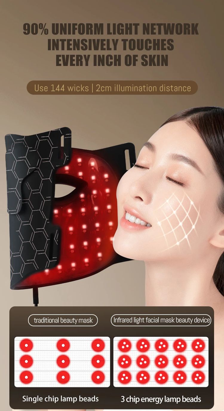 The main function of the LED Light Facial Mask Wearable Red Light Therapy is to deliver the target red light (usually 630-660nm) onto the skin to achieve skin care effects. This medical-grade light penetrates the dermis, stimulating the production of collagen and elastin. It can also promote blood circulation and facilitate the delivery of nutrients to skin cells, thereby brightening dull skin tones and balancing them. In addition, it helps to calm inflammation, assists in soothing acne or sensitive skin, and supports skin repair. Unlike harsh treatment methods, it is gentle, non-invasive and safe for daily use, making it the top choice for families for effective skin rejuvenation.